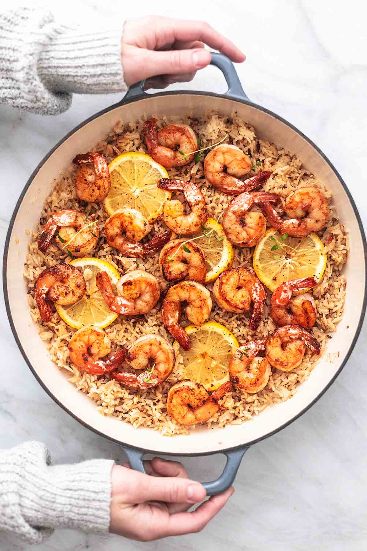 - Lemon zest: I always love a little zip of lemon when I’m making shrimp and rice dishes but you can leave it out if you want. Just remember to zest before you squeeze and slice the lemon, it’ll make zesting so much easier.