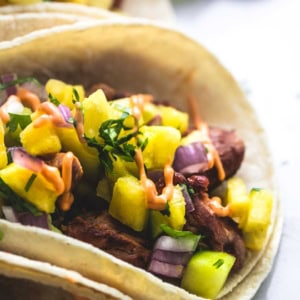 I think pork is a protein that gets overlooked a lot in favor of beef or chicken. I’m not sure why, it’s one of my favorite meats and can be just as versatile as all the other meats. That’s why I chose it for this recipe specifically. That’s not to say you couldn’t enjoy these tacos with beef or chicken but the pork paired with the pineapple just reminds me of being on a luau in Hawaii or somewhere tropical.