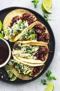 If you love slow cooker tacos, then you’ll also love my Slow Cooker Korean BBQ Pork Tacos, Slow Cooker Ranch Chicken Tacos, or my Slow Cooker Hawaiian BBQ Pork Wonton Tacos.